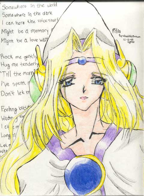 I have always loved browsing through the "fanart" sections of fansites. ^^ Why? Because there are so many talented artists in the Slayers community -- and some have been featured on this page in recognition of their beautiful Filia fanart! This portfolio is still small though, so if you have fanart (solo ones of Filia, perferably), then send them in -- show off your talent! :P