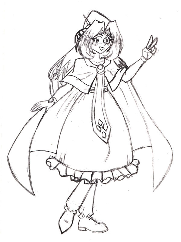 A lovely full-body sketch of Filia giving the peace sign! |