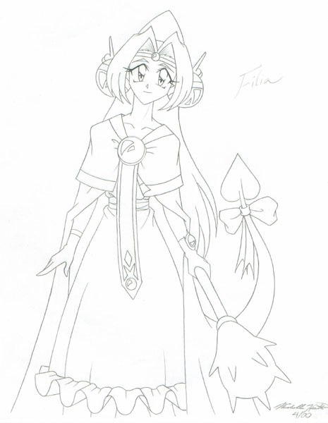 I have always loved browsing through the "fanart" sections of fansites. ^^ Why? Because there are so many talented artists in the Slayers community -- and some have been featured on this page in recognition of their beautiful Filia fanart! This portfolio is still small though, so if you have fanart (solo ones of Filia, perferably), then send them in -- show off your talent! :P